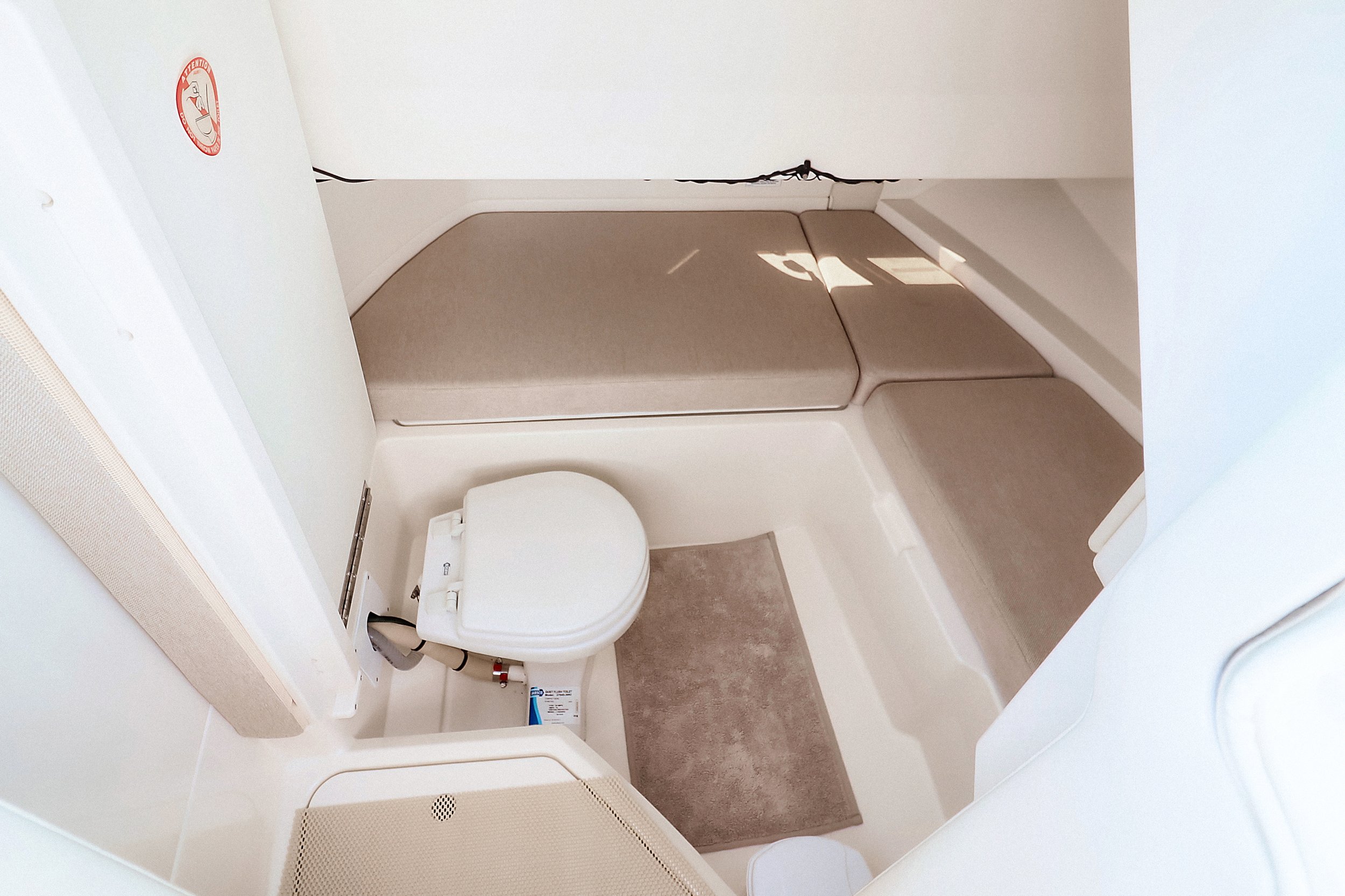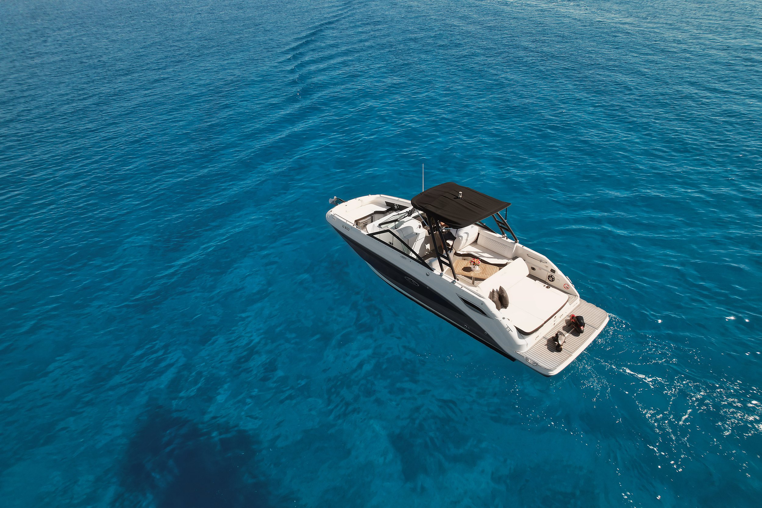Contemporary, athletic design is epitomised in this yacht, showcasing sleek curves and premium finishes throughout.